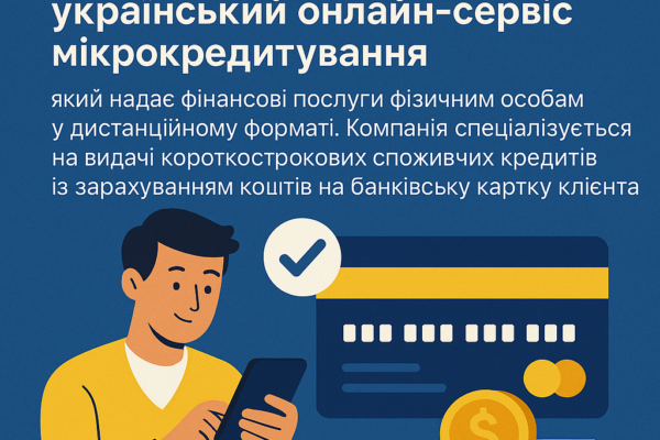 Microcash – це український онлайн-сервіс мікрокредитування, який надає фінансові послуги фізичним особам у дистанційному форматі. Спеціалізується на короткострокових споживчих позиках, кошти переказуються безпосередньо на банківську картку клієнта.
