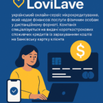 LoviLave – український онлайн-сервіс мікрокредитування, який надає короткострокові споживчі кредити з видачею коштів на банківську картку.
